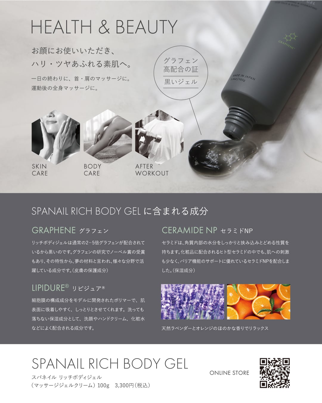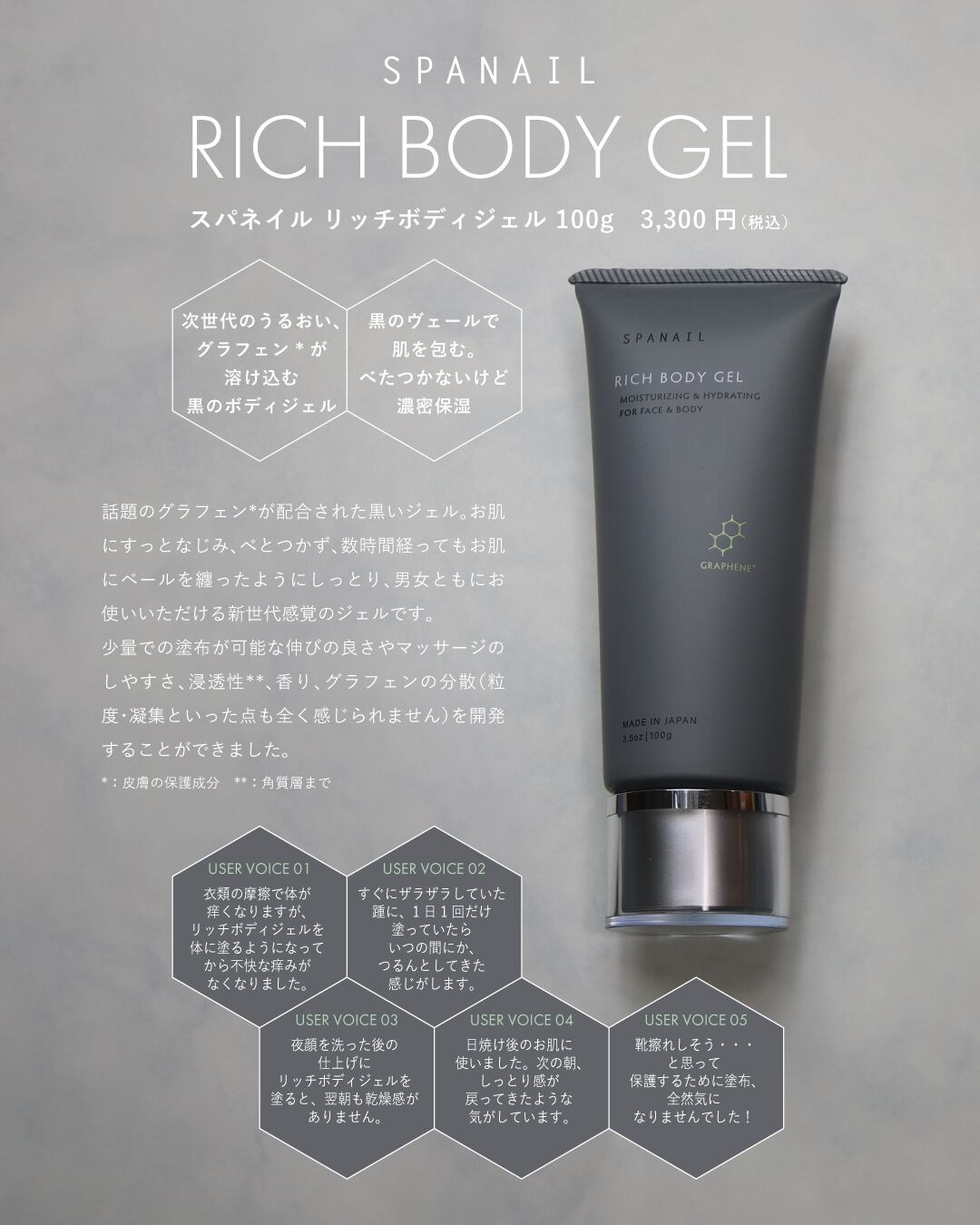次世代のうるおい、グラフェン*が溶け込む黒のボディジェル