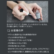 ご使用の前によく撹拌して下さい。お風呂上りや朝のお出かけ前に、清潔な爪に薄く塗布してください。手、足の爪にお使いいただけます。爪の根元部分や、裏側に塗っていただいても効果が期待できます。